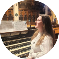 Emily R. E. Roth began piano lessons at age 6 and later studied organ, earning a Master’s Degree in Organ Performance from the University of Minnesota in 2023. She has performed as a soloist throughout the Rochester and Twin Cities area, served on the Northrop Organ Advisory Board, and participates in the Young Women’s Organist Cohort. Emily also teaches and enjoys drawing, painting, and performing popular music.